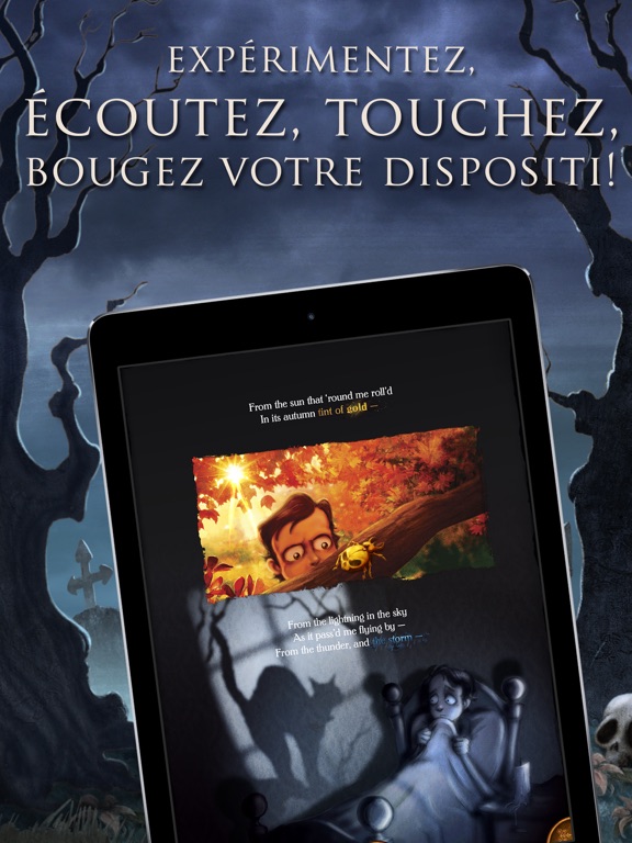Une lecture interactive où les sensations prennent vie : expérimentez! Écoutez, touchez, bougez votre dispositif et osez découvrir les détails inaperçus à première vue.