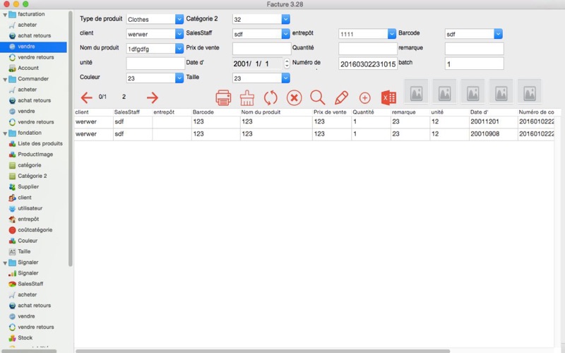 Gestion de stock pour sauver classification du nom de produit du numéro de code-barres du prix d'achat d'achat du prix de vente des unités