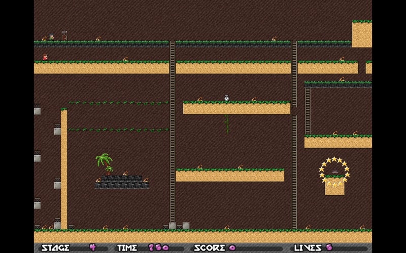 The goal is to guide an android around each level, collecting every bag of gold on the screen while avoiding roving enemies and collecting bonus fruit. As with Lode Runner, gameplay involves running, climbing, hanging, and dropping bombs in order to dig holes or trap enemies.