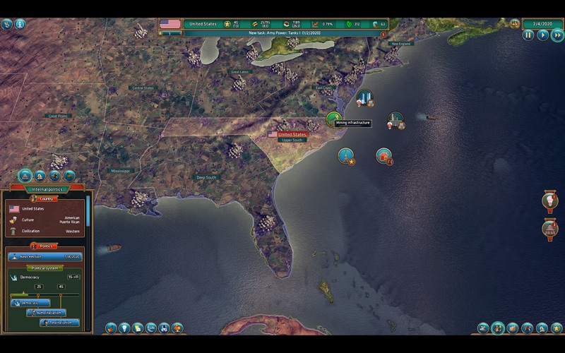 Realpolitiks is a streamlined real-time grand strategy game that allows you to become the leader of any contemporary nation. Dive deep into the issues of the modern world, with its current geopolitical borders, using your country’s power and economic strength to engage in military conflicts and international affairs. Choose your own method of coping with other nations' interests, unexpected events, global threats and various crises. Deal with the disintegration of the European Union, terrorism, the aftermath of World War III and many other real and fictional scenarios.