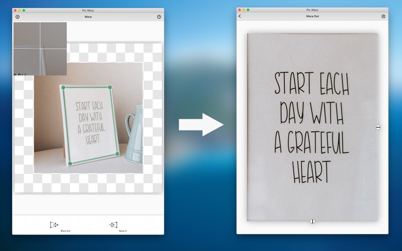 [Pic Warp] is a powerful photo geomtry editor which supports perspective skew and unskew on your photo.