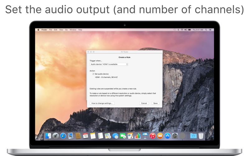 Simple, powerful rules to control your screen resolutions and audio output devices.