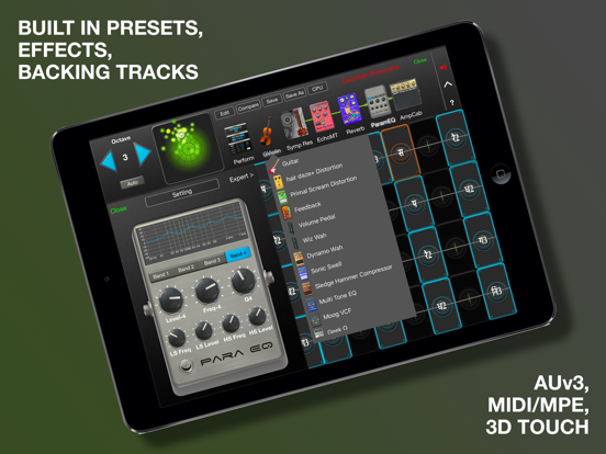 It has a performance surface with “almost magic” pitch rounding algorithms which is coupled with a model of the physics of several types of musical instruments, support for AUv3, MIDI In/Out, MPE, and 3D Touch. It’s a fusion of Jordan Rudess’ performance concepts and a powerful, modeled guitar/effects based on the Physical Modeling research of Dr. Julius O. Smith III of Stanford/CCRMA. And, GeoShred's expressive control can be used with other synthesizers.