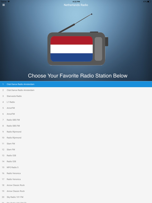 - Favorite your Dutch radio stations for faster and better access next time!