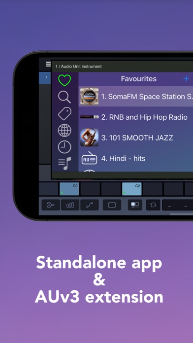 Elevate your listening experience by enhancing streaming audio in real time using your favorite third-party audio processing plugins (not included) within AUv3-compatible hosts like Drambo or GarageBand.
