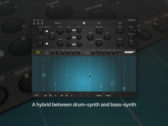 A different kind of drumsynth. Ruismaker Noir presents a hybrid approach between synthesized drums and rhythmic bass sounds - coming together in the fully integrated step sequencer. Throw in a nasty, dirty personality and you get something really new for the iOS platform.