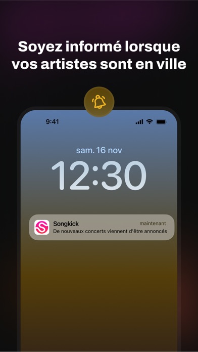 Songkick te permet de suivre facilement tes artistes préférés et te prévient dès qu'ils annoncent des concerts près de chez toi. Grâce à Songkick, achète tes billets de concert facilement, et ne manque plus jamais tes artistes en live !