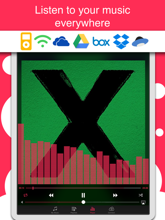 Access your favourite music across all your devices: iPhone, iPad, iPod library, Box, Dropbox, Google Drive, OneDrive, Yandex.Disk and your computer. Stream your music with in advanced and powerful media player.