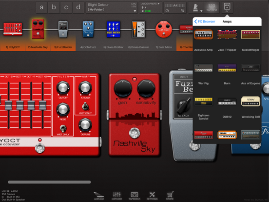 ToneStack also brings many powerful guitar FX to the iOS for the first time: polyphonic octaver, harmonizer, realistic spring reverbs, virtual-reel tape delays are just a few examples.