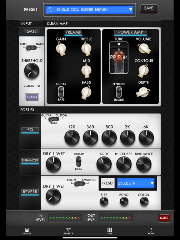 Vous contrôlerez la sélection des presets, de l’enceinte (mais pas l’import d’enceintes de votre licence vers l’appareil, ni la suppression d’enceintes de la mémoire interne du Torpedo - Il faut utiliser Remote sur ordinateur via USB pour cela), le placement des micros, de la pièce acoustique, l’eq, et bien plus. Avec l’app Remote, vous pourrez contrôler et régler votre son facilement et rapidement, partout, avec votre téléphone/tablette. Bénéficiez de la liberté dont vous rêviez, pour créer votre musique, et contrôler votre son simplement.