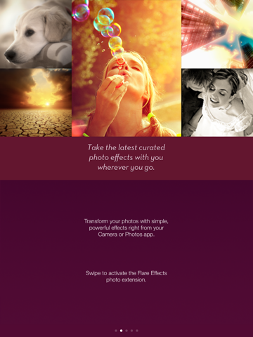 Tired of using the same old photo effects over and over? With Flare Effects you have easy access to dozens of world-class photographic effects, directly via the Camera and Photos apps.