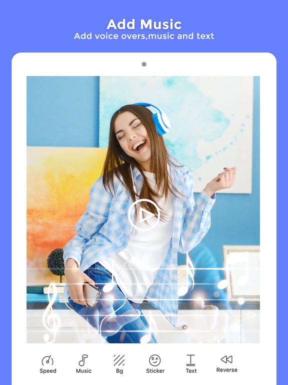 * Add music to your video at a specified time.