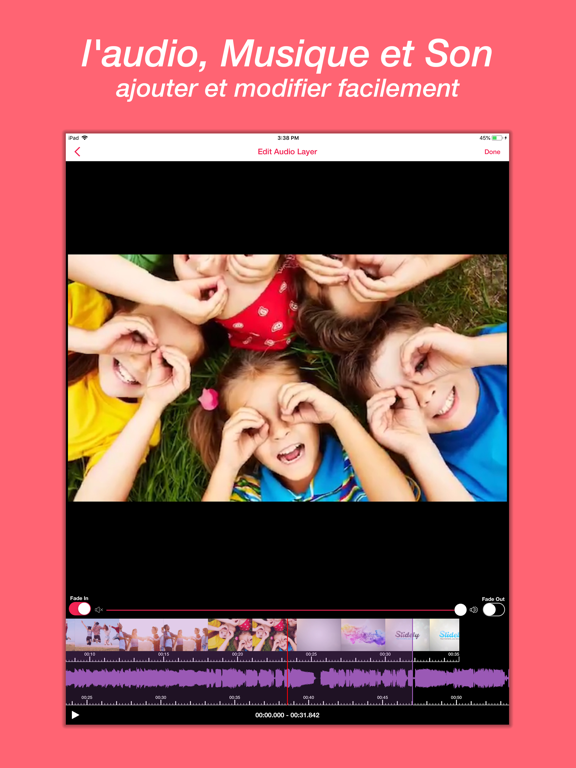 Prend en charge la musique de fond, les effets de fondu entrant et sortant, etc.
