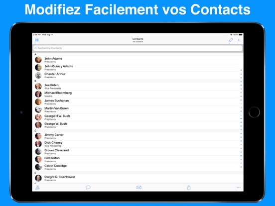 ABC est l'application de gestion des contacts puissante pour votre iPhone, iPad, & iPod. Avec ABC, vous pouvez facilement accéder & modifier vos contacts & groupes. Gagnez du temps en envoyant des messages & des courriels à des groupes. ABC peut tout faire avec une suite impressionnante de fonctionnalités que vous pouvez voir ci-dessous!