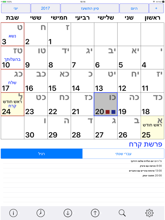 Hebrew Calendar show hebrew and gregorian date on one screen