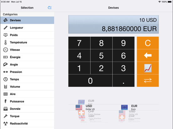 Nous apportons le convertisseur comprenant des taux de change à votre suivi Apple. Convertir des devises et unités directement sur votre montre.