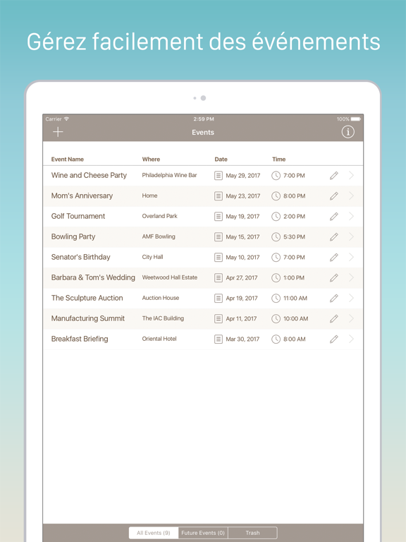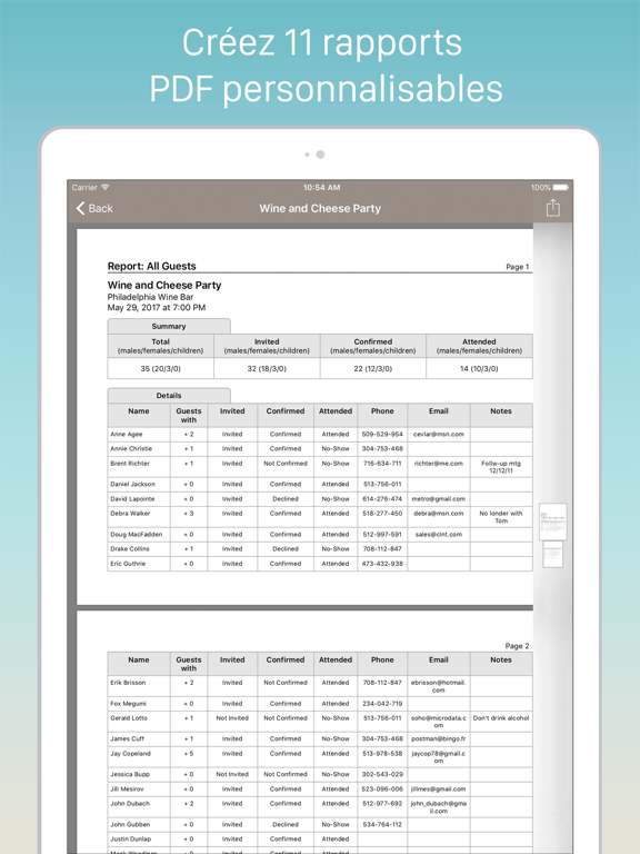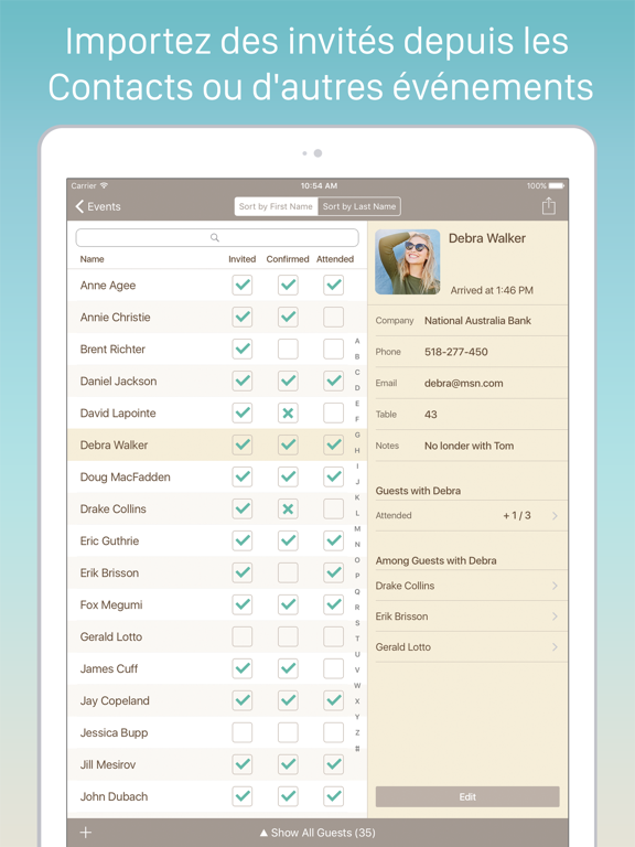 - Présenter l'application sur votre iPad à un hôte afin qu'il puisse vérifier rapidement le nombre d'invités attendus