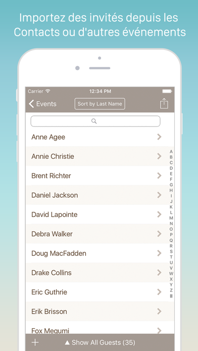 - Classer les invités en toute simplicité : selon les noms des invités, leur confirmation, leur présence...