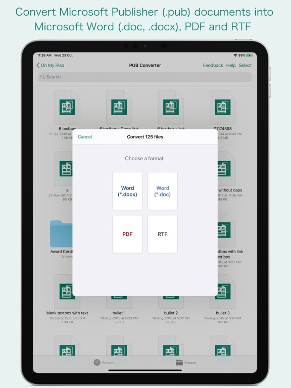Note: “PUB Converter” is standalone application running natively to open and convert Microsoft Publisher documents (.pub) securely right on your iOS device.