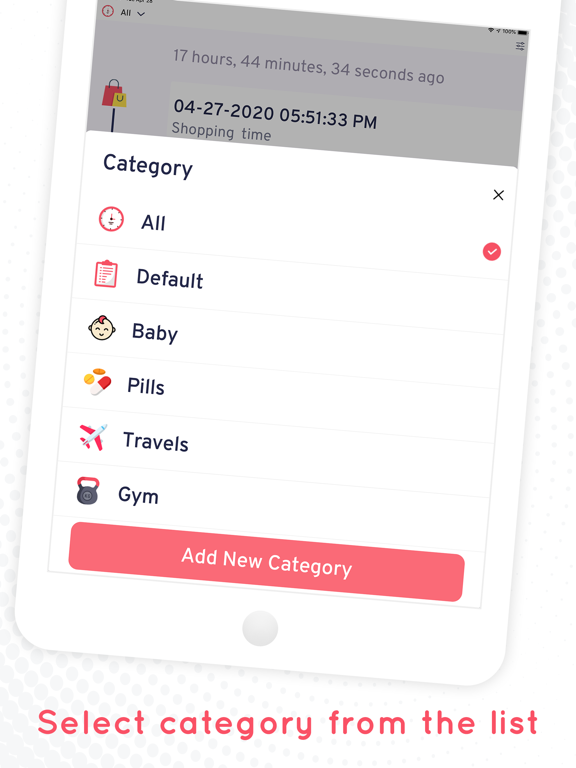 • Available categories: All, Default, Baby, Book, Food, Gym, Home, Pill, Travel , Cap , Car , Flame , Flowers , Gift , Heart , Hospital, Map , Money , Movie, Music, Night , Pet , Phone , Pizza, Shopping Bag, Sport, Stop Watch, Train, Water, Weather
