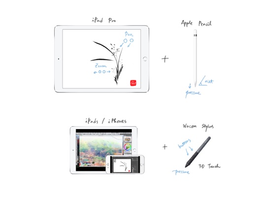 - Apple Pencil Pressure & Tilt and Hover