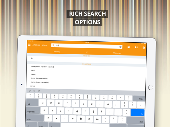 THE AMERICAN HERITAGE® ROGET'S THESAURUS (*available as an In-App Purchase) offers an intelligent and sensible guide to synonym selection. It provides a wide range of synonyms, ranging from mainstream vocabulary to the colorful alternatives that make English such a rich and versatile language. Thousands of slang, informal, and regional words broaden the coverage even further. Each synonym list focuses on a clear definition that quickly guides the user to the relevant meaning.