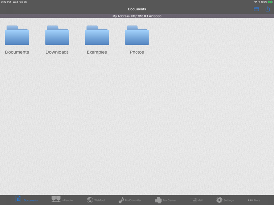 2. On your iPad/iPhone, start this app, and open the Documents module. Make a note of the URL that is displayed at the top of the Documents menu.