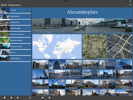 Berlin Impressionen: Fotos, Videos, Wikipedia, Streetview, Webcams, Wetter. Die App ist interessant für Berliner und Touristen gleichermaßen. Aus einer unendlichen Auswahl zeigt die App einen Teil aus Berlin. Sie möchten das Aquadom / Sealife oder die bemalte Mauer besuchen? Verschaffen Sie sich vorher einen Eindruck und sehen sich dort um. Im Laufe der Zeit kommen weitere Inhalte dazu, es ist aber jetzt schon sehr umfangreich.