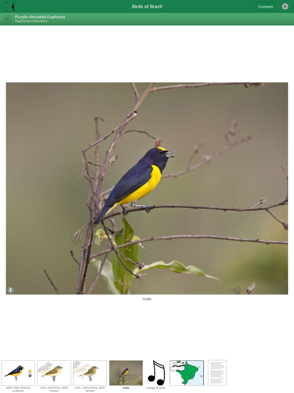 Based on Ber van Perlo's ‘Field Guide to the Birds of Brazil’, this app covers over 1,800 species of bird seen in Brazil, including residents, migrants and vagrants. Helpful texts detail size, habitat and description, while informative illustrations show a host of plumages for each species, including subspecific variation. Distribution maps and stunning still photographs further enhance the app, and songs and calls of over 1,200 species complete the package. The result is a must-have app for anybody birding in Brazil.