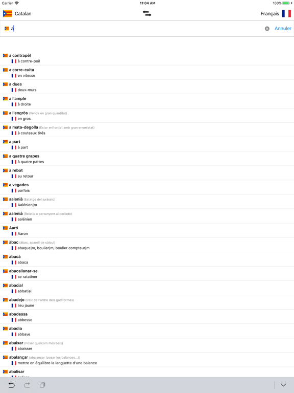 - Recherche à partir des mots en français et à partir des mots en Catalan