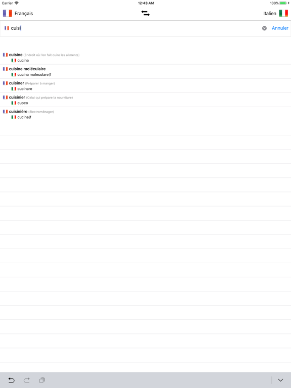 - Recherche à partir des mots en français et à partir des mots en Italien