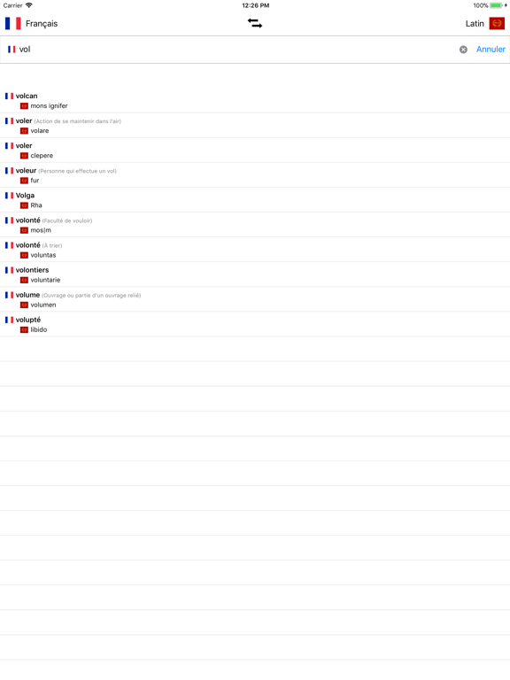 - Recherche à partir des mots en français et à partir des mots en Latin