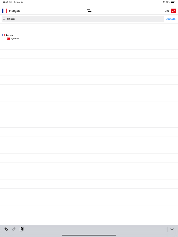 - Recherche à partir des mots en français et à partir des mots en Turc