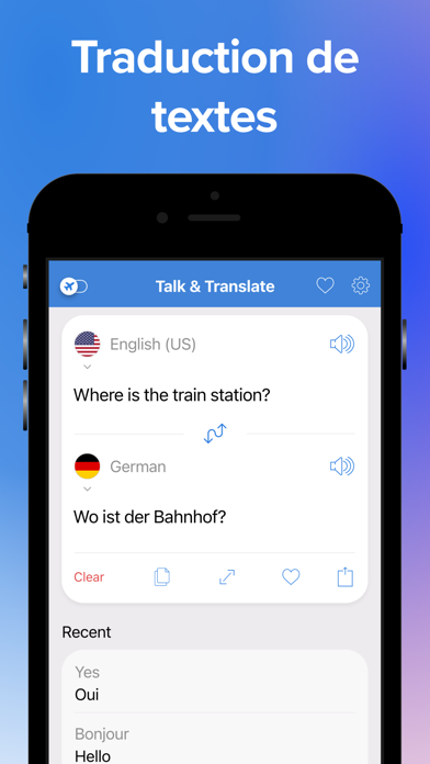 Attention : Talk & Translate Free nécessite une connexion internet active. Le mode hors connexion permet d'utiliser l'app sans connexion internet pour certaines langues.