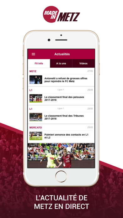 Suivez toute l'info des Grenats gratuitement sur votre mobile, grâce à l'application Foot Metz (Infos, Analyses, Interviews, Mercato, Résumés de matchs).