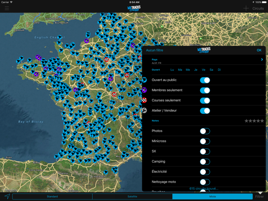 Informations sur la difficulté de la piste ainsi que les installations (douches, électricité, camping, la zone de lavage dirt bike), type de sol donné, longueur de la piste et une note de la piste dans son ensemble est.