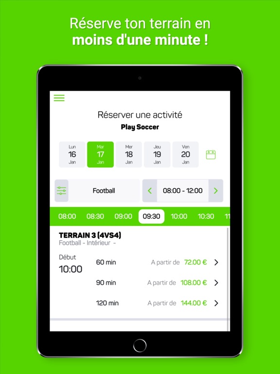 Fini la corvée de réservation ! Avec l'application tu n'as plus qu'à accéder aux créneaux disponibles et à en choisir un. Le club recevra alors automatiquement ta réservation.