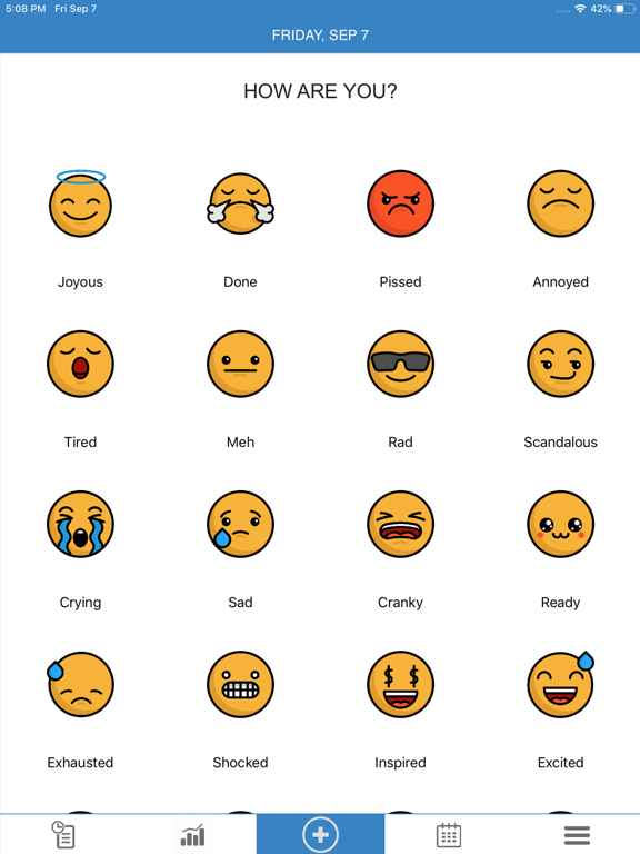 - Gardez une trace des humeurs et des activités avec facile, sans dactylographie nécessaire, entrées