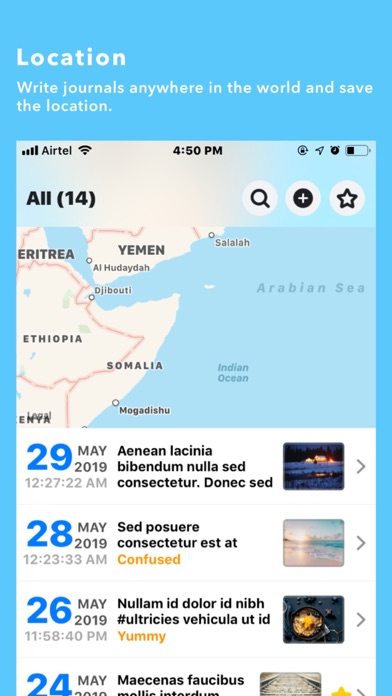Capture your precious moments using the diverse features of Daily Journal and arrange it with text and photos on a day by day basis.