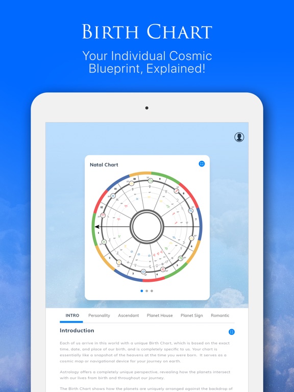• Your personal natal chart, which is based on the location and exact time of your birth, as well as a customized, comprehensive read of your personality, including how your ascendant (how you interact with the world) and planetary placements reveal your cosmic strengths, weaknesses, and potential, as well as your love and relationship style.
