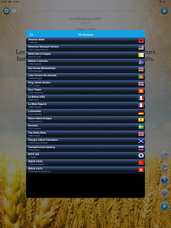 La version Pro de cette application vous permet de partager vos versets, enlève toute publicité offre en plus les versions suivantes: