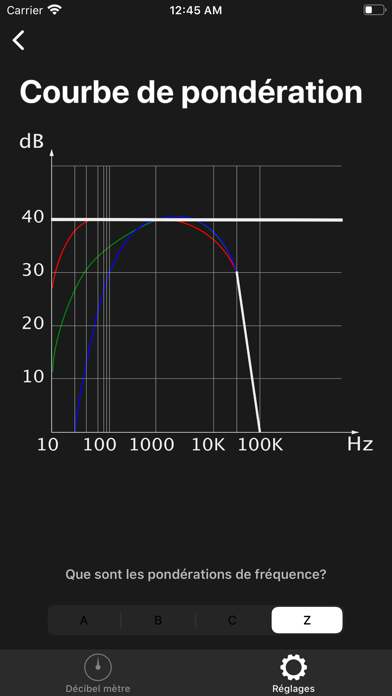 Cette application dispose d'un écran de paramètres, qui donne la possibilité d'étalonner les décibels en fonction des spécificités du microphone de l'appareil.