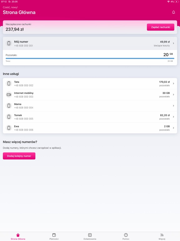 Zarządzaj swoimi numerami bez wychodzenia z domu - niezależnie od tego czy masz abonament, T-Mobile na kartę, MIX, Internet domowy czy telewizję. Kontroluj swoje usługi w sposób prosty i intuicyjny!
