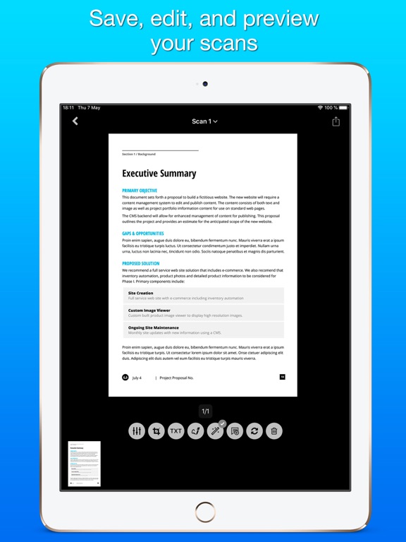 Scanner transforme votre iPhone et votre iPad en scanners portables. Il intègre un détecteur de bord manuel ou automatique, élimine les ombres et corrige la perspective. En quelques secondes, vous obtiendrez des fichiers PDF, JPEG ou PNG de plusieurs pages de qualité professionnelle qui auront fière allure.
