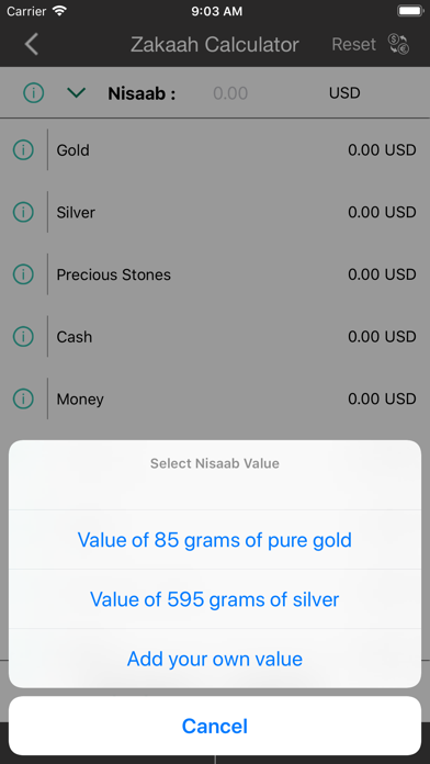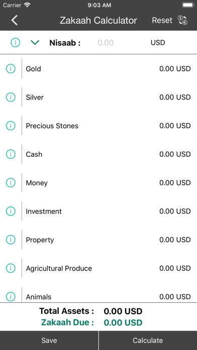 Calculez facilement votre zakat annuel et enregistrez son montant pour le consulter dans le futur. L’application peut trouver la valeur du Nisab (seuil minimum) en fonction de la valeur de l’Or ou de l’Argent, ou vous pouvez entrer votre propre valeur nissab. Comprend des catégories variées avec notamment : espèces, or, argent, investissements, prêts, élevage et plus encore !