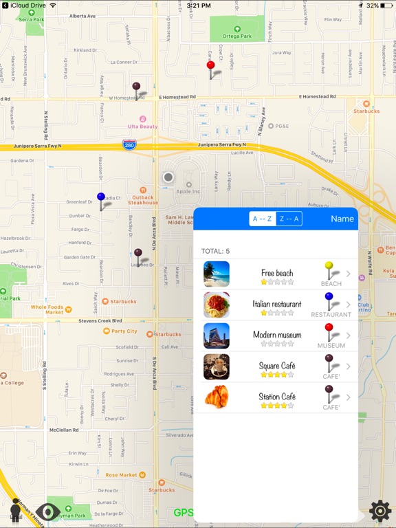 - Possibilité de verrouiller l’appli avec un mot de passe pour empêcher la modification des repères. Utile en cas d’utilisation professionnelle.