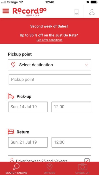 Chez Record go, nous avons créé une nouvelle App pour nous adapter à vos besoins. Une App qui vous permettra de réserver votre voiture, de gérer facilement votre location, de localiser nos bureaux ou de rapidement contacter le service d’assistance sur la route. Nous aimons que nos clients soient satisfaits, c’est pourquoi sa nouvelle fonctionnalité vous permettra de vérifier l’état du véhicule au départ, en téléchargeant vos propres photos, pour que le retour du véhicule soit rapide et sans problème. Sautez sur l’occasion ! Vos vacances commencent avec Record go !