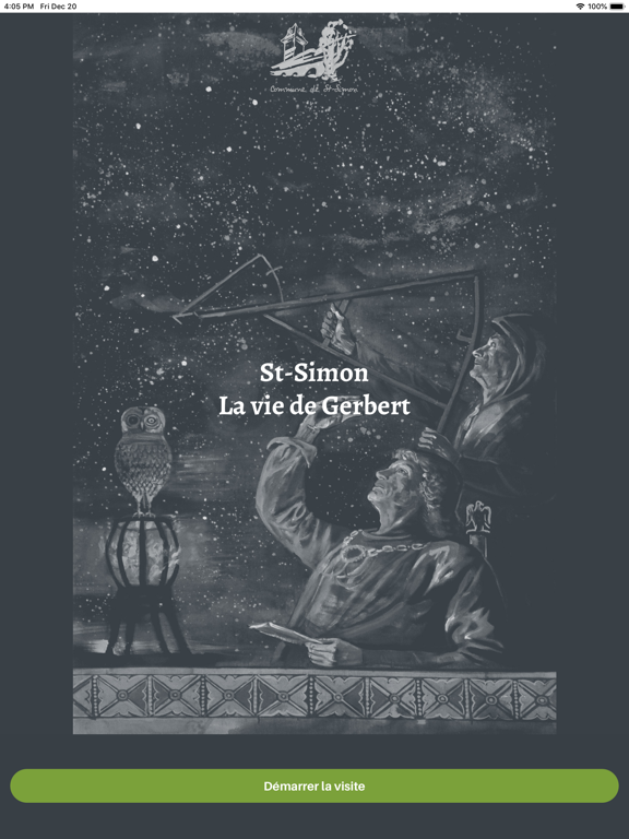 Une fois l’application « ST-SIMON – LA VIE DE GERBERT » téléchargée sur votre smartphone, laissez-vous guider naturellement sur un parcours qui commence sur la place centrale du village, puis au pied de la Tour de l’église, se poursuit à l’intérieur de l’église devant les treize peintures de Gábor SZINTE, devant la cuve baptismale, et s’achève non loin de là, sur le superbe pont médiéval en pierres qui enjambe la rivière Jordanne.